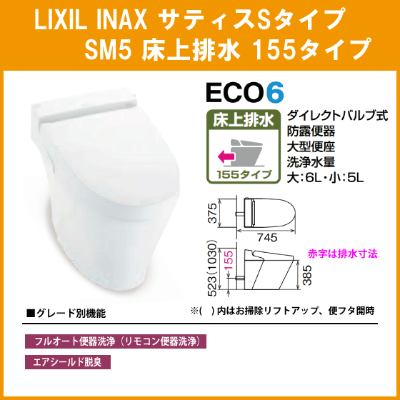 LIXIL INAX サティスSタイプ 床上排水 155タイプ SM5グレード(ブースター付) YBC-S30PMF,DV-S725PM リクシル イナックス タンクレス便器